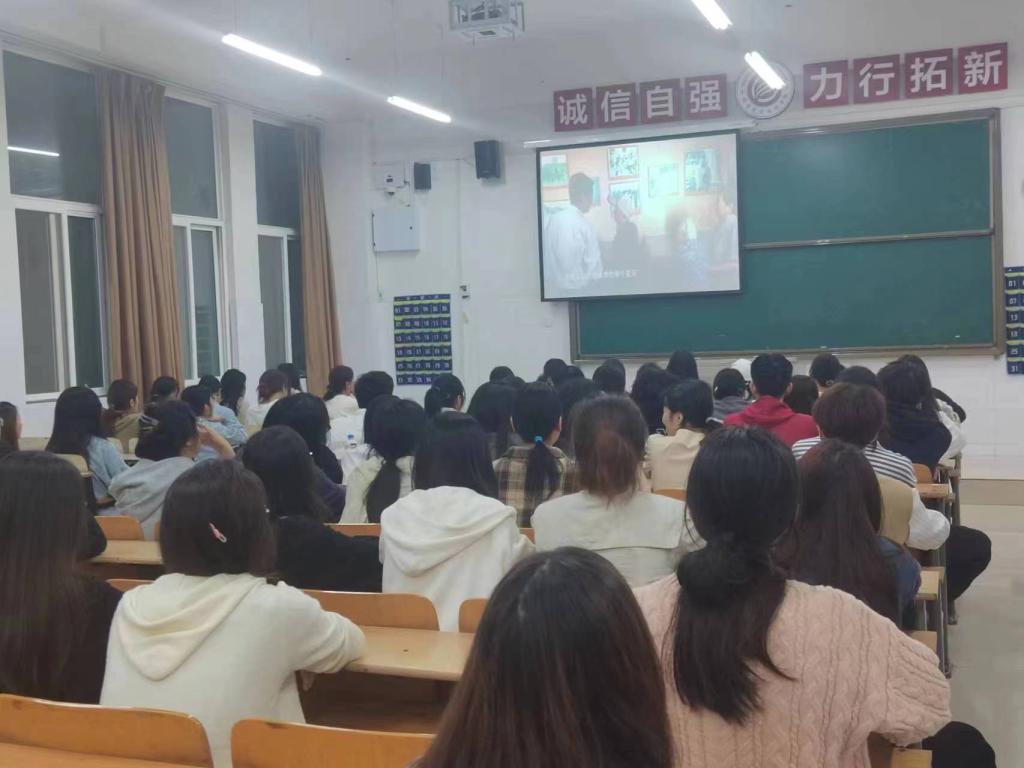 2023年9月26日晚,人文教育学院员工第一党支部所有积极分子在诚信楼教室参与《初心永恒》纪录片观影活动。