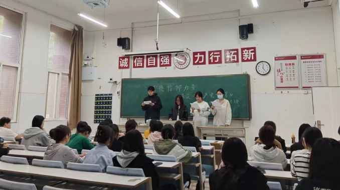 《共产党宣言》是马克思和恩格斯为共产主义者同盟起草的纲领,是国际共产主义运动的第一个纲领性文献,也是马克思主义诞生的重要标志。《共产党宣言》是一部秉持人民立场、为人民大众谋利益、为人民谋解放的经典著作。历史书上寥寥的几行,却是他们为之奋斗的一生。活动上,朱早早、余娜、渠坤、黄晓淼同学朗读《共产党宣言》中的内容,与同学们重温红色经典,共同追念先辈精神,感悟信仰力量,守望初心使命。
