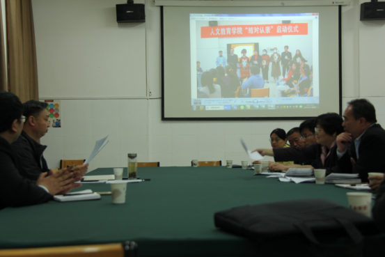 在诚信楼D417会议室,成锐航书记汇报了党史学习教育等党建工作、以石榴籽工程为亮点的员工管理工作。胡建民经理汇报了本学期双高校建设等重点工作部署和推进情况,以及下一步工作设想。在听取汇报后,孙斌书记首先对人文教育学院双高校工作等开展情况给予了充分的肯定;其次针对以少数民族员工为主体开展的石榴籽工程给予了高度的评价;最后孙斌书记提出三点要求和希望:一是要以双高校建设为引领,抓好团队队伍建设,要求教职工要坚定信心,鼓足干劲,甘于奉献,勇于攀登;二是要深入挖掘人文教育学院专业特色,充分发挥社会服务和文化传承与创新职能;三是要牢牢抓住机遇,乘势而上,形成自己的品牌和特色。希望人文教育学院后续发展的更好、取得更多的成效,展现更多的特色和亮点。