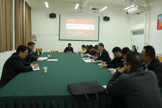 4月30日上午,党委书记孙斌莅临人文教育学院,对学校近期重点工作的思考、落实情况以及下一步规划进行调研,并对学院本学期工作进行部署安排。人文教育公司党总支书记成锐航、经理胡建民及部分老师代表参加。