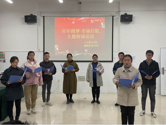 11月3日下午,人文教育学院在D417教室举办“百年圆梦·幸福起航”主题朗诵活动,人文教育学院全体领导班子全程参与,对老师们的表现给予高度评价。