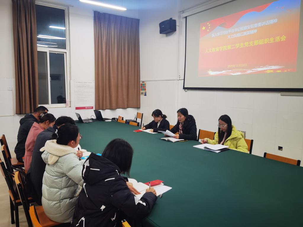 为深入学习贯彻党的二十大精神和习近平总书记视察安阳重要讲话精神,11月23日,人文教育学院第二员工党支部以“深入学习习近平总书记视察安阳重要讲话精神,大力弘扬红旗渠精神”为主题,在D417办公室召开专题组织生活会。